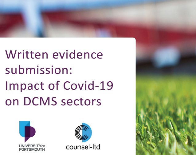 The written evidence submission ‘Impact of COVID-19 on the Digital, Culture, Media and Sport sectors’ was submitted by Counsel and the University of Portsmouth in June 2020 to the UK Parliament, Digital, Culture, Media and Sport Committee. See UK Parliament website for the original inquiry and publications here.